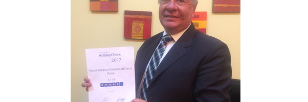 El majestuoso hotel Sonesta Posadas del Inca Puno, ubicado a orillas del Lago Titicaca, ha sido reconocido con la prestigiosa Certificación de HolidayCheck, que valora la calidad de los hoteles en base a los comentarios y opiniones de los viajeros alemanes. HolidayCheck es una página web de viajes líder en los países de habla alemana, … Sigue leyendo Certificado de Reconocimiento a Sonesta Posadas del Inca Puno