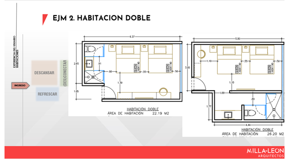 Para le diagrama inicial del Masterplan, les mostramos algunas experiencias en el diseño de habitaciones y sus consideraciones: