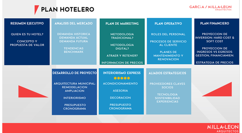 El primer paso en cualquier proyecto hotelero es desarrollar un plan integral que abarque: