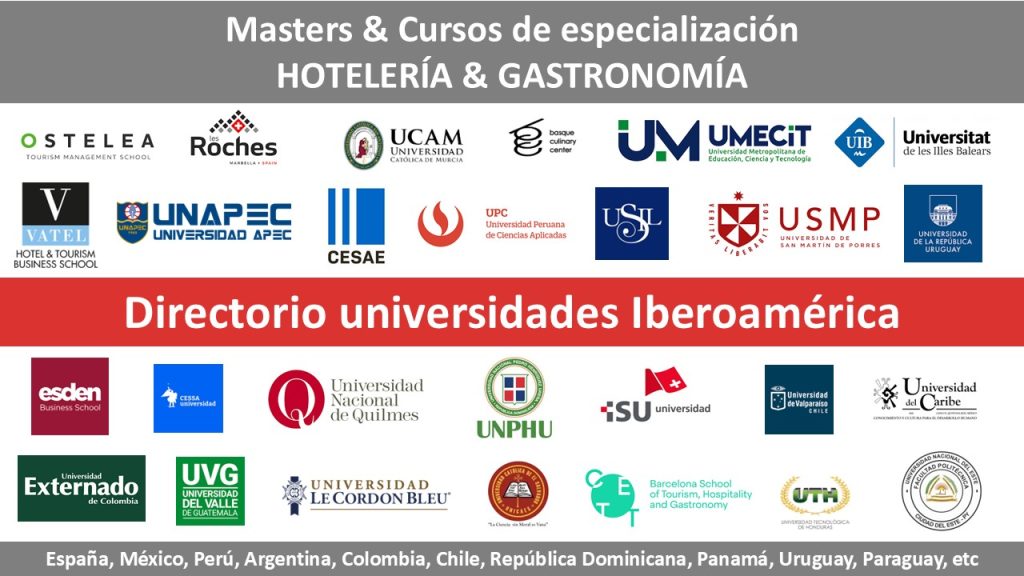 Hemos creado este directorio con el objetivo de centralizar y facilitar el acceso a información sobre universidades e instituciones de Iberoamérica que cuentan con programas de formación en hotelería, hospitalidad y turismo. En este espacio encontrarás un listado de instituciones académicas que ofrecen maestrías, MBAs, especializaciones, diplomados y programas de educación continua vinculados al sector. … Sigue leyendo Directorio de Masters y programas especialización de hotelería en universidades e instituciones educativas de Latinoamérica y España