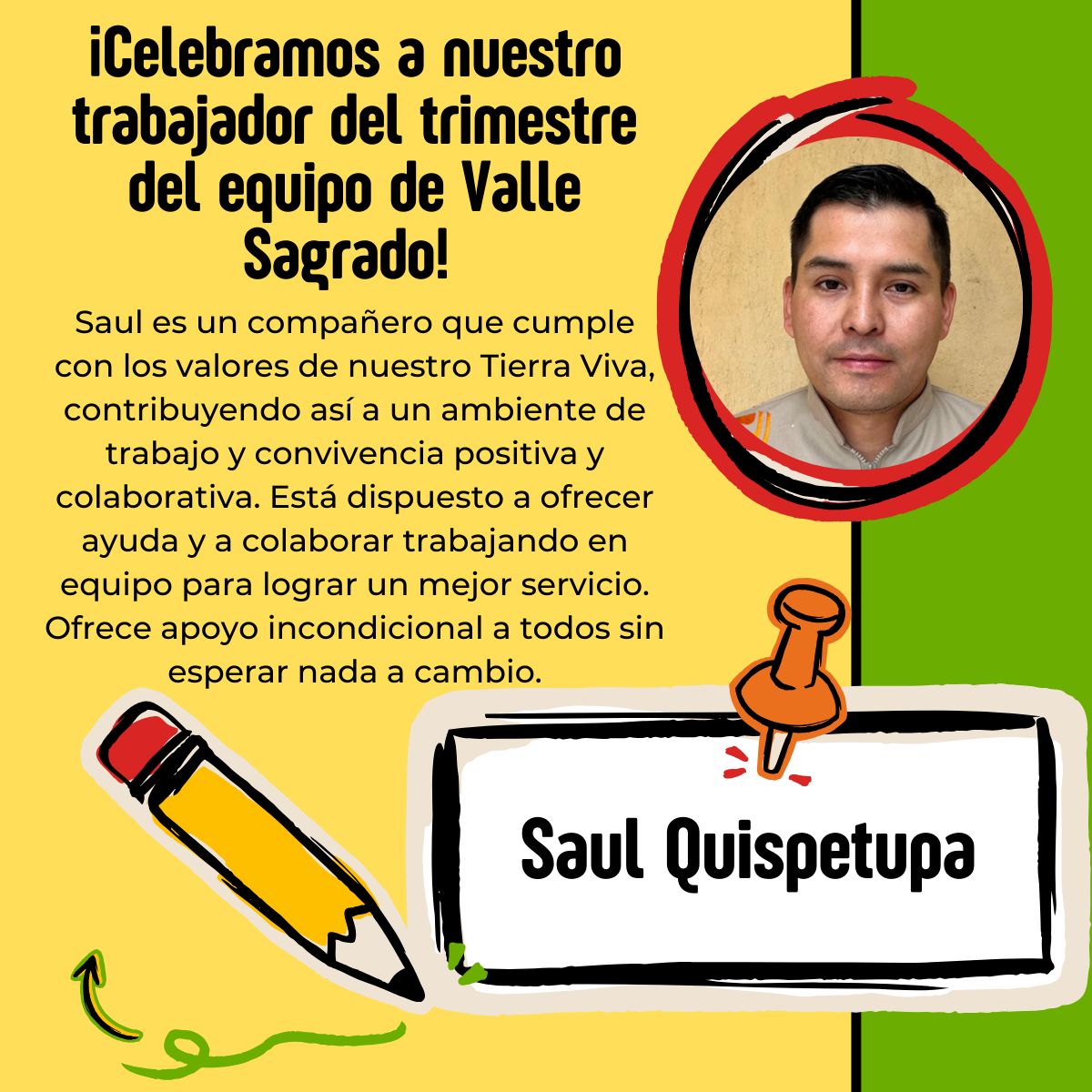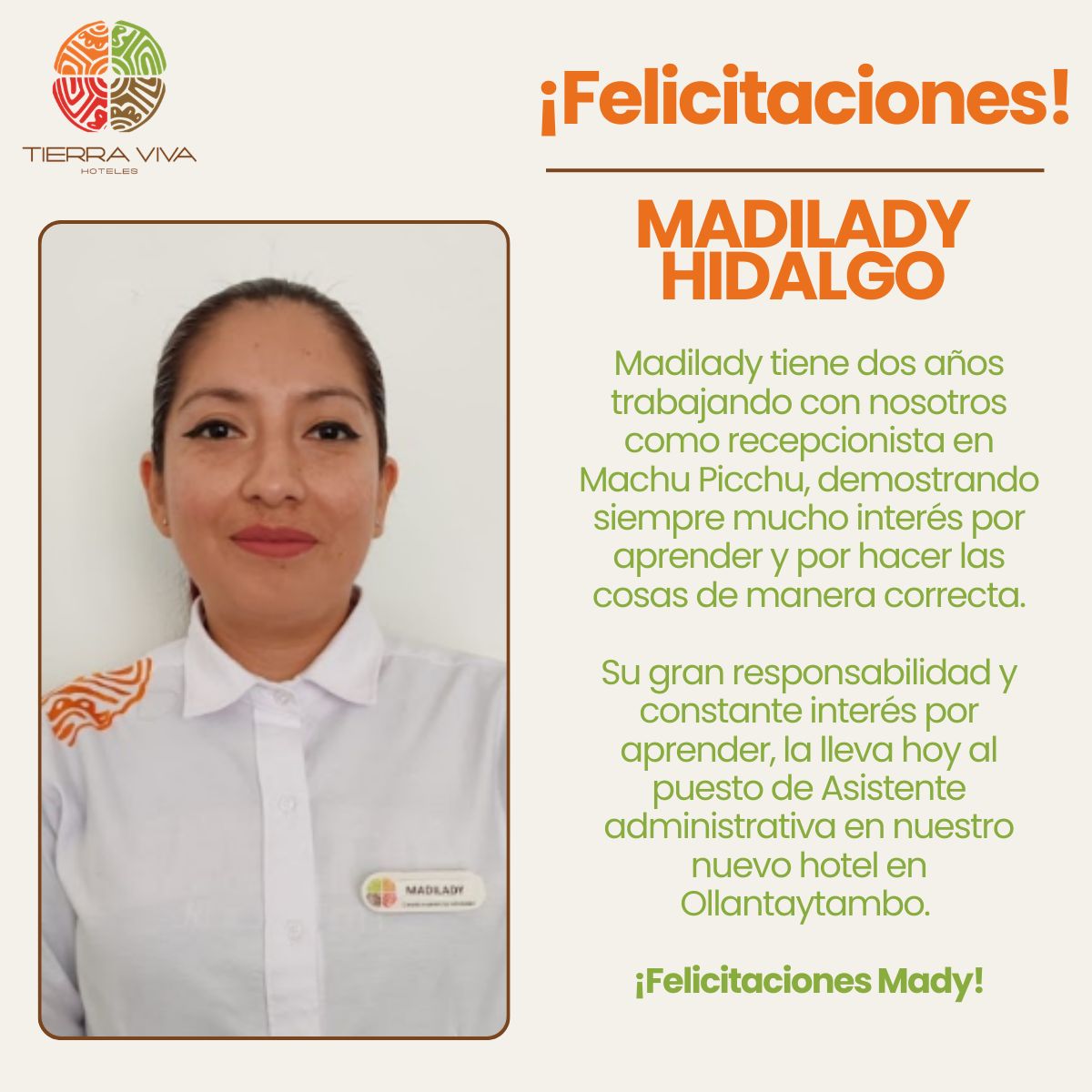En Tierra Viva Hoteles creemos que las personas hacen la diferencia. Somos una cadena hotelera peruana comprometida con brindar experiencias inolvidables a nuestros huéspedes, en un entorno de trabajo amigable, inclusivo y retador para nuestro equipo. Contamos con una operación de 13 hoteles en Piura, Trujillo, Lima, Arequipa, Puno, Tacna y Cusco, incluyendo Valle Sagrado y Machu Picchu pueblo . Al momento de elegir a nuestro equipo, valoramos profundamente la pasión por el servicio, la proactividad, la integridad, el trabajo en equipo y una actitud que transmita nuestra energía, valores que definen a Tierra Viva. Nos encanta la gente alegre, con ganas de crecer y aprender y promovemos mucho las líneas de carrera. En Tierra Viva somos inclusivos, ¡todos son bienvenidos! Si cumples con el perfil y tienes una discapacidad, queremos conocerte. Tierra Viva hoteles es una empresa de régimen general, todo el personal ingresa a planilla y ofrecemos todos los beneficios de acuerdo a ley (CTS, asignación familiar, 30 días de vacaciones). Adicionalmente ofrecemos beneficios a nivel cadena.