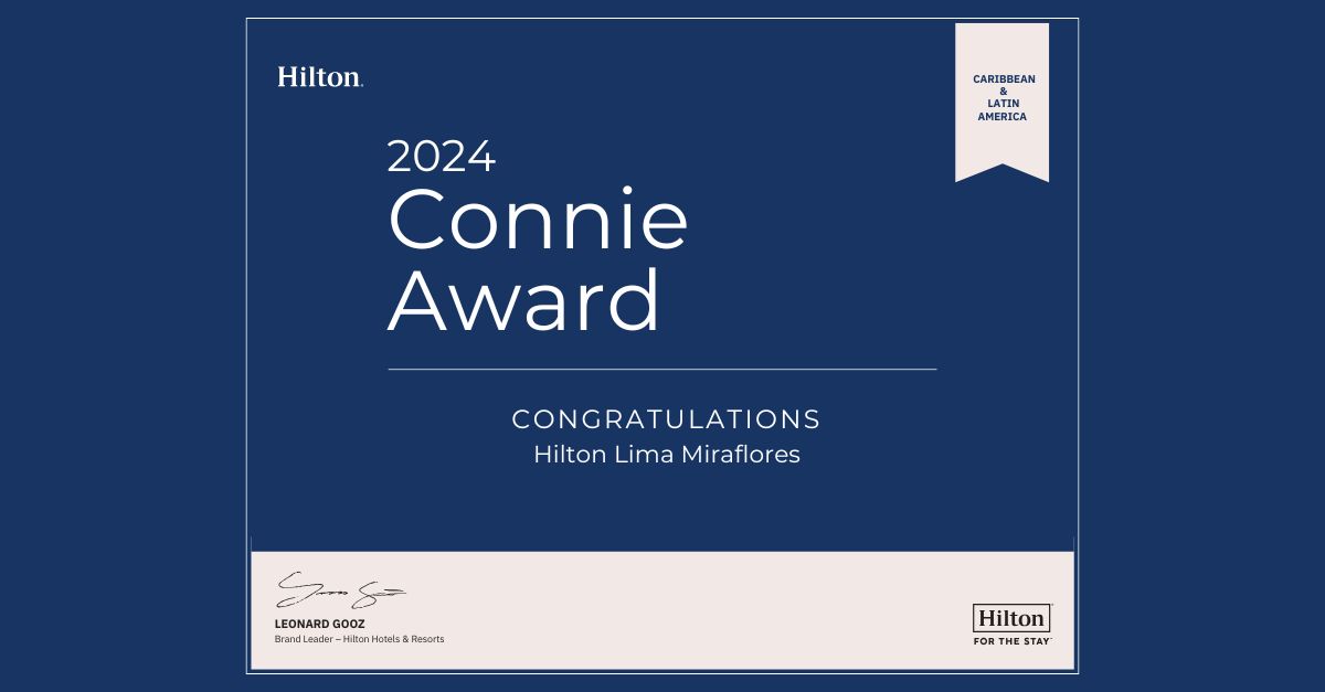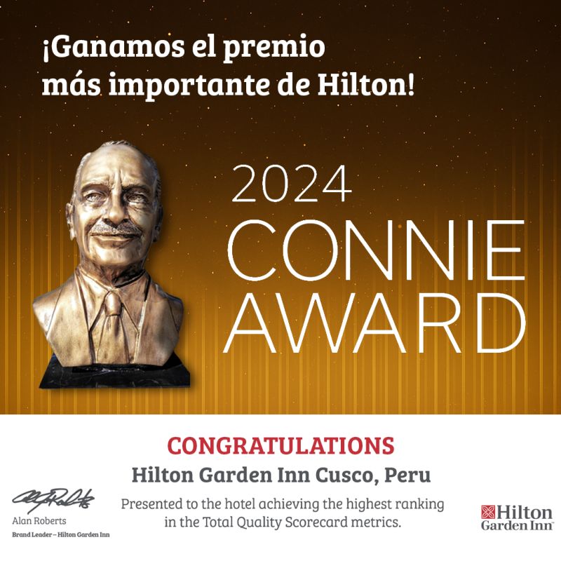 Nos enorgullece felicitar a Hilton Garden Inn Cusco y Hilton Lima Miraflores por haber sido reconocidos con el Connie Award 2024, el más alto galardón que otorga la prestigiosa cadena Hilton a nivel mundial.