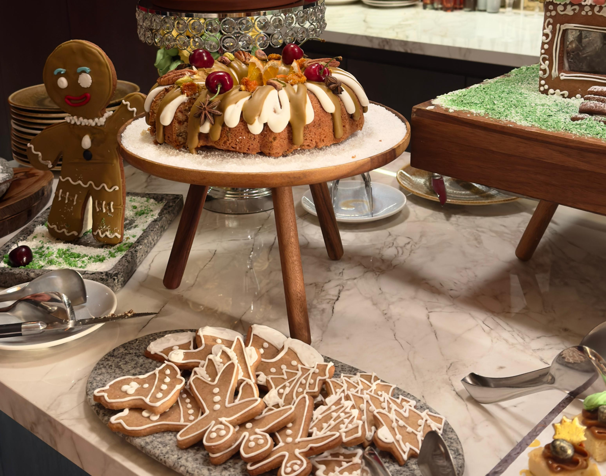 El Cocoa Time resalta por la amplitud y creatividad de su oferta: incluye preparaciones frías como mini sándwiches en panes de colores, bruschettas, tostas y tartaletas. La zona de calientes presenta pavo en carving, jamón glaseado, chanchito en sus jugos, alitas BBQ y guarniciones típicas de temporada como puré de camote especiado, arroz árabe y papas bávaras. Además, se suman pizzas, mini baos de pollo crocante y una selección de panes artesanales elaborados en casa. Time también incluye una amplia mesa de postres donde destacan galletas temáticas, troncos navideños, cannolis de pistacho, brownies, donuts, mini apple pies y croissants rellenos de Nutella, entre otras preparaciones que se renuevan diariamente. El precio es de S/95 para adultos y S/55 para niños entre 5 y 12 años.