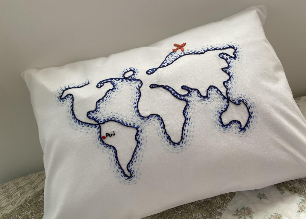Allin Puriq ofrece almohadas decorativas bordadas a mano, de diseños únicos inspiradas en el mensaje principal: “Algún día volveremos a viajar”