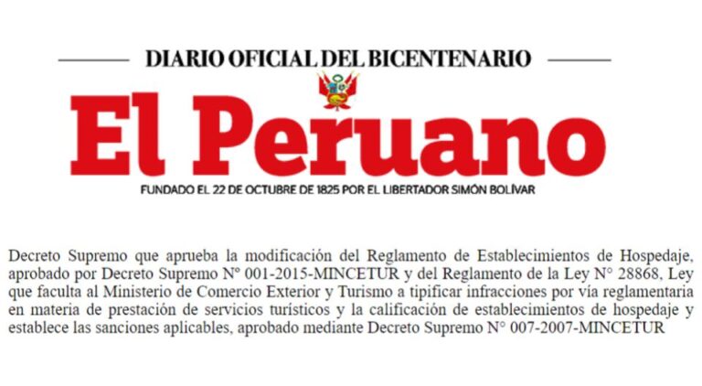 Mincetur aprobó la modificación del Reglamento de Establecimientos de Hospedaje, a fin de cumplir con la Ley 30802, que faculta al Mincetur a tipificar infracciones en la prestación de servicios turísticos y hoteleros para el ingreso de niñas, niños y adolescentes a dichos establecimientos con el objetivo de garantizar su protección e integridad. A continuación, … Sigue leyendo Mincetur modifica reglamento de hospedajes y establece nuevas condiciones para el ingreso de niños y adolescentes