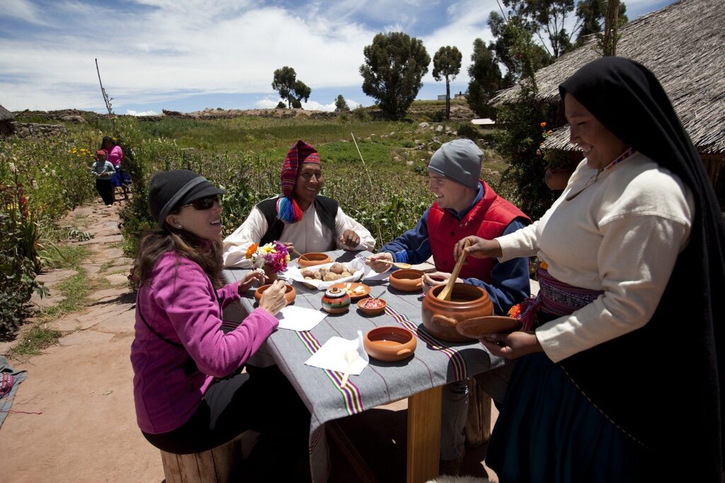 Comunidad de Ccotos: La comunidad conserva sus costumbres y manifestaciones culturales autóctonas. También es posible convivir con las familias del lugar y participar de sus actividades. Puedes realizar caminatas a los miradores naturales, paseos en bote a vela en el lago Titicaca, y admirar el paisaje.
