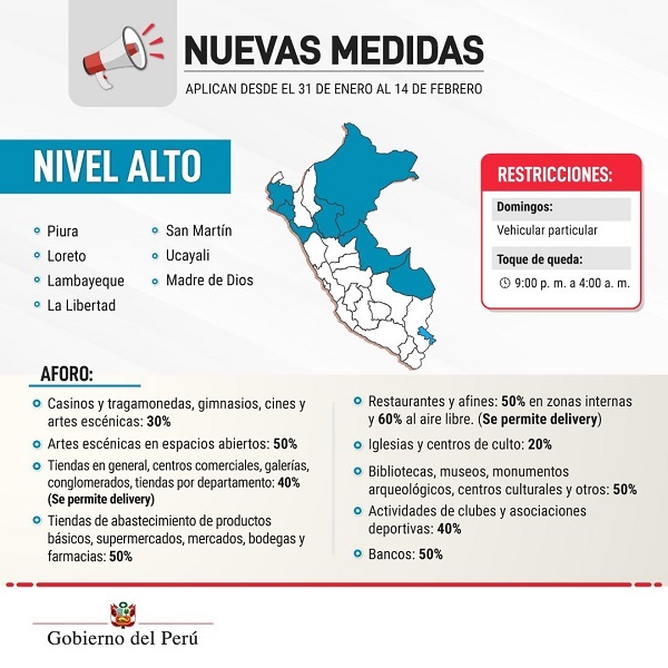 El presidente anunció las diferentes medidas que aplicarán en las regiones desde el 31 de enero hasta el 14 de febrero de 2021.